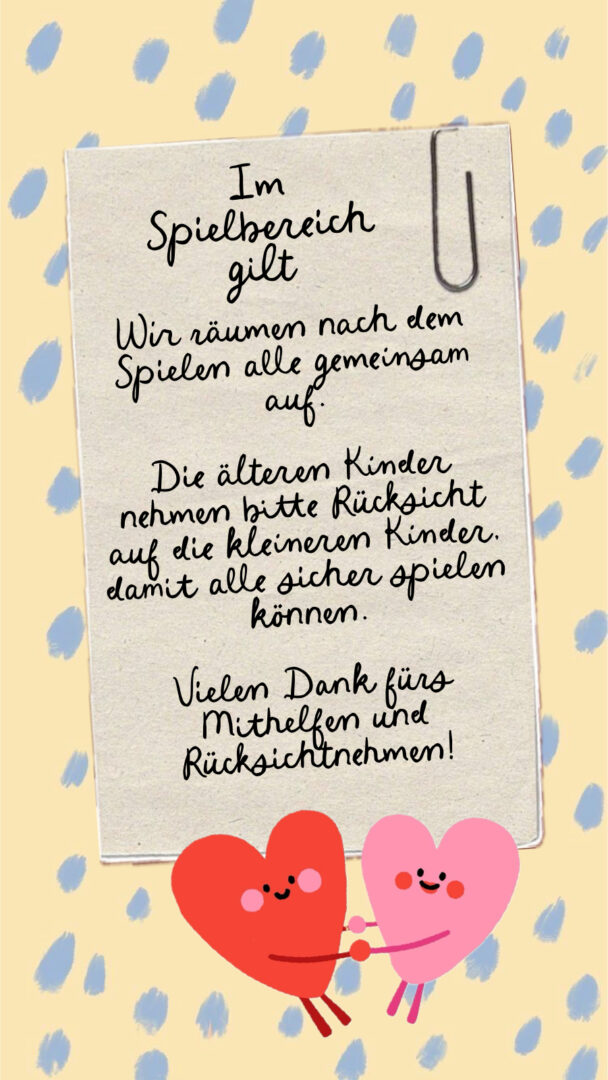 Unser Fokus liegt nicht nur auf den Kindern, sondern auch auf den Eltern. Wir möchten einen Ort schaffen, an dem ihr euch als Erwachsene treffen und euch in Ruhe austauschen könnt. Genießt einen Kaffee, Kuchen oder Snack, während die Kinder spielen. Für ältere Geschwister gibt es ebenfalls kleine Highlights – sie können sich mit einem Buch oder Spiel beschäftigen und gemeinsam entspannen.