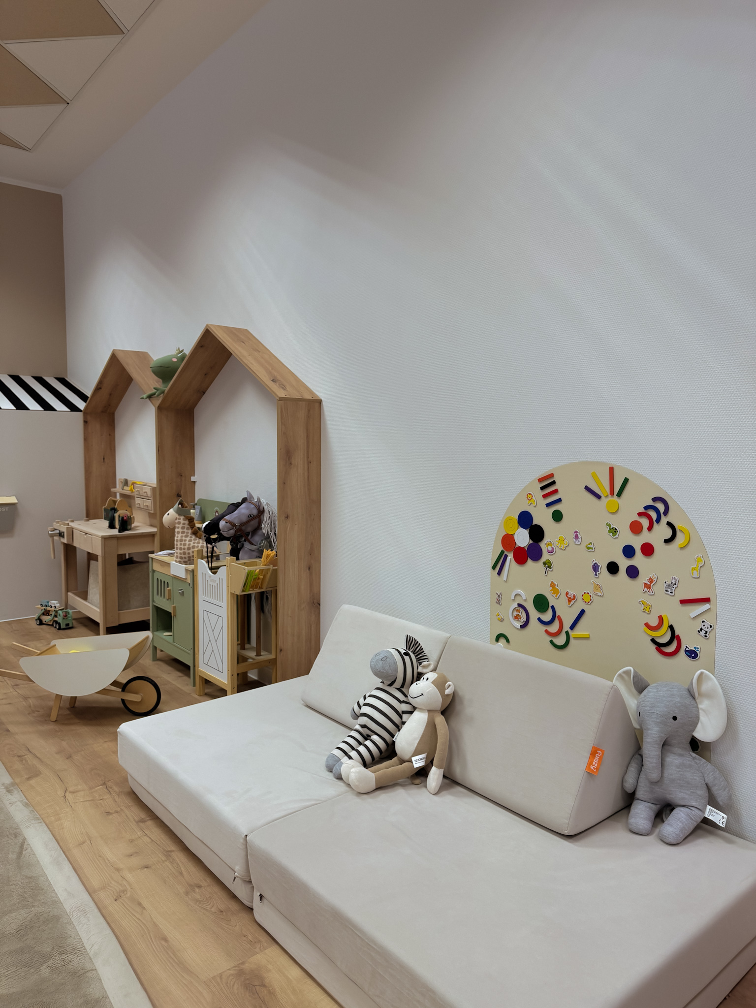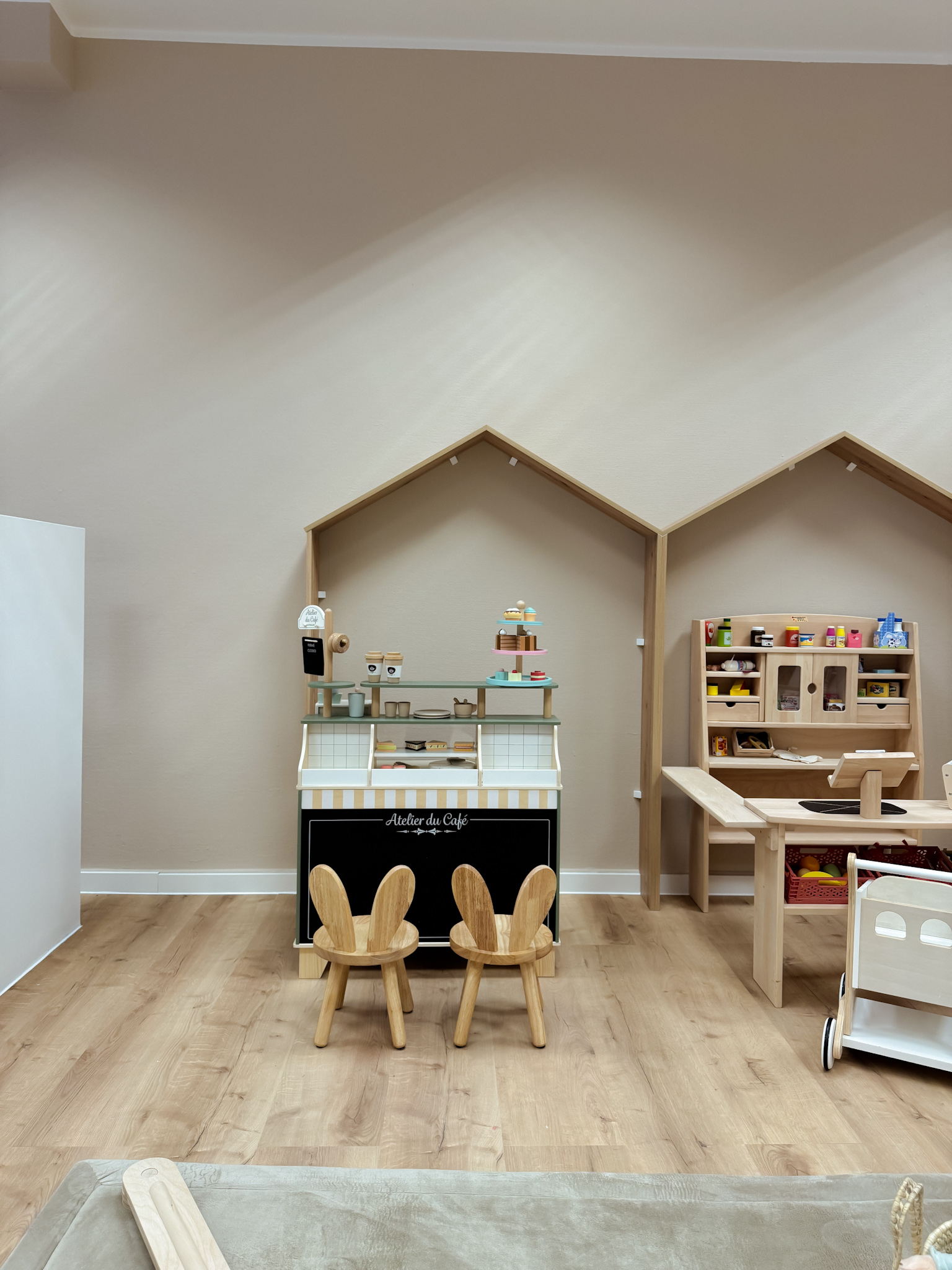 Hier können Eltern, Großeltern, Tanten und alle, die mit Kindern unterwegs sind, in Ruhe ihren Kaffee genießen, während die Kleinen sich mit liebevoll ausgewählten Spielsachen vergnügen.